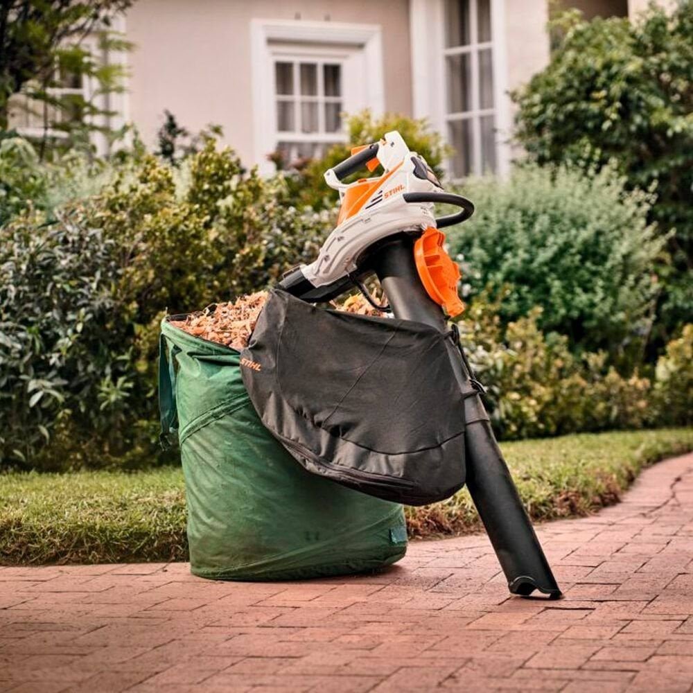 Primeiro triturador a bateria da gama STIHL. Aparelho prático 2 em 1, pode ser utilizado tanto para aspirar folhas e resíduos verdes como para soprar folhas ou papel. A conversão de triturador para soprador é particularmente fácil e não necessita de ferramentas. Muito boa ergonomia em ambos os modos de trabalho, graças à pega rotativa com controlo de velocidade variável. Como triturador com pega frontal adicional, estrela de trituração metálica e fita de transporte almofadada. O saco de recolha é enganchado no tubo de aspiração oferecendo o máximo de espaço para as pernas, graças ao seu design assimétrico. Saco de recolha montado nas costas disponível como acessório. Como soprador com tubeira redonda, bem como tubo de sopro ajustável em 2 níveis de comprimento. Tubeira plana para aumentar a velocidade do ar, disponível como acessório.