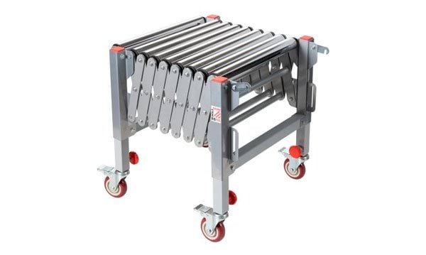 O transportador de rolos expansível é usado no manuseio para mover cargas ocasionalmente.