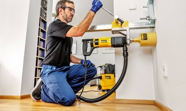 Caroteadora elétrica de diamante com tecnologia de micro-impulsos para perfuração a seco em betão, betão armado ≤ Ø 162 (202)mm, alvenaria e outros materiais ≤ Ø 202mm, à mão ou com montante.