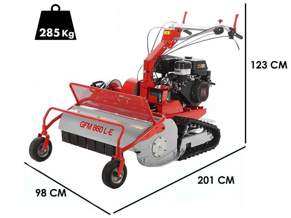 La tondeuse débroussailleuse GeoTech-Pro GFM 860 L-E est une machine conçue pour faucher l’herbe haute, envahissante et non entretenue dans les champs.