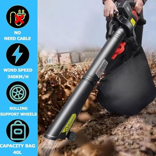 - 【Paquet】 Le souffleur de feuilles sans fil comprend 1 souffleur/aspirateur de feuilles, 2 batteries 40 V 4,0 Ah, 1 chargeur, 1 manuel d’utilisation, 1 sac de collecte de feuilles de 40 L, 1 bandoulière