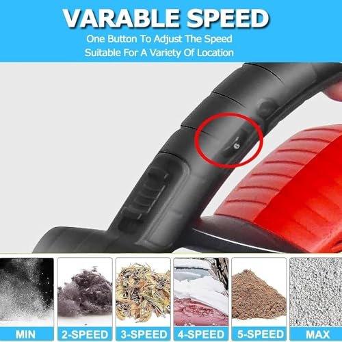- 【Polyvalent】Vitesse à vide : 5000-14000rpm ; Volume d’air : 156CFM ; Vitesse : 6 vitesses ; Vitesse du vent : 340KM/H. Le souffleur de feuilles à batterie est équipé d’un moteur sans balais à haut rendement, avec une vitesse de vent puissante de 340 km/h et un volume d’air jusqu’à 156 CFM.