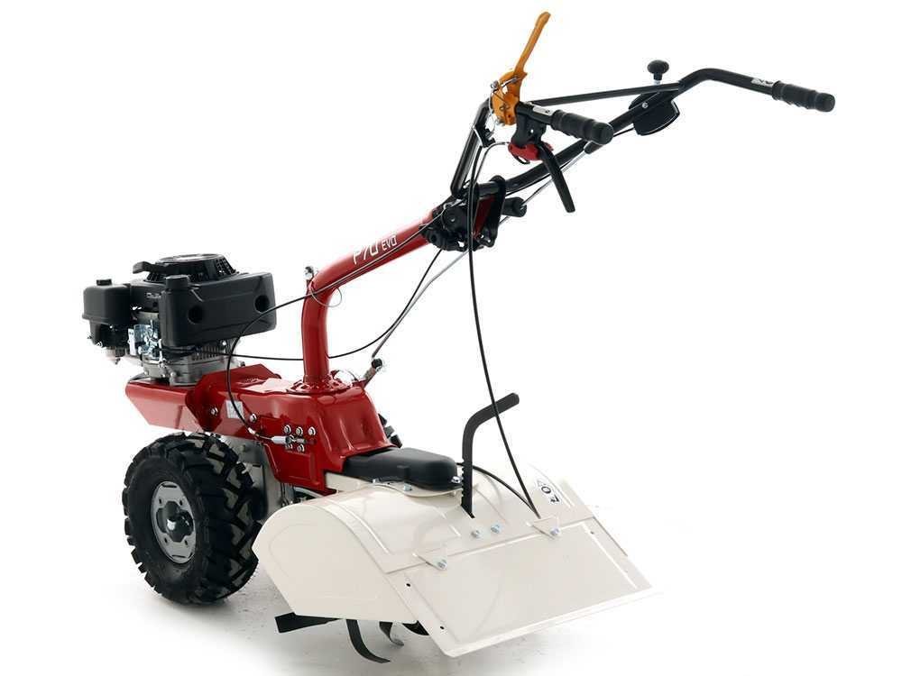 O Eurosystems P70 EVO Loncin é um motocultivador térmico autopropulsionado, equipado com motor a gasolina de 4 tempos e grandes rodas motrizes ligadas a uma transmissão por engrenagens em banho de óleo.