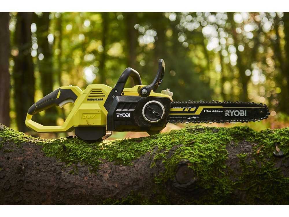 La tronçonneuse à batterie RYOBI est alimentée par une batterie puissante de 36V et est alimentée par le moteur électrique Ryobi.